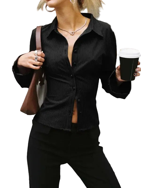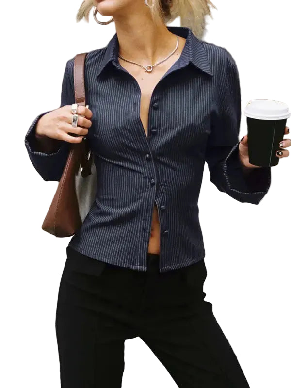 Damen Gestreiftes Langarmhemd mit Knopfleiste für den Alltag